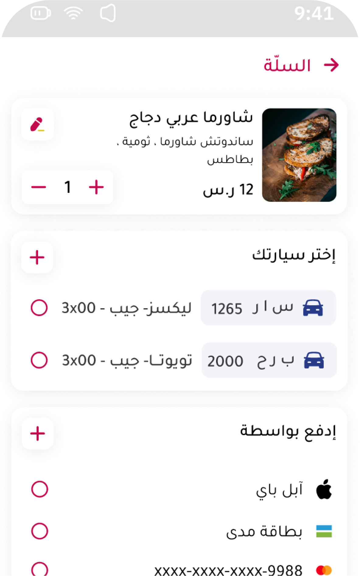 Select your car and payment method.